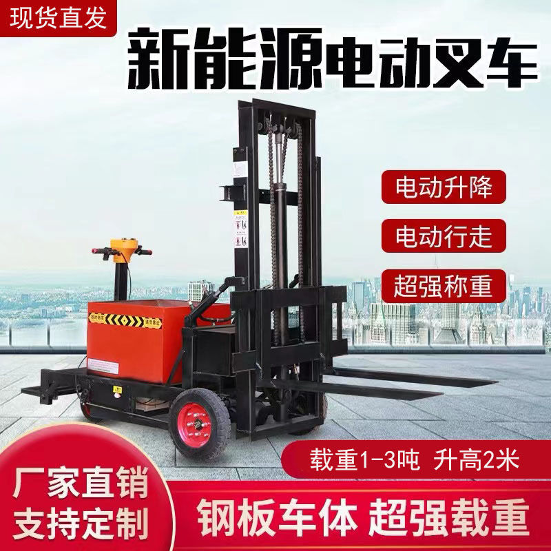 永济市小型电动叉车1吨站驾式2吨液压升高铲车全自动仓储堆高车